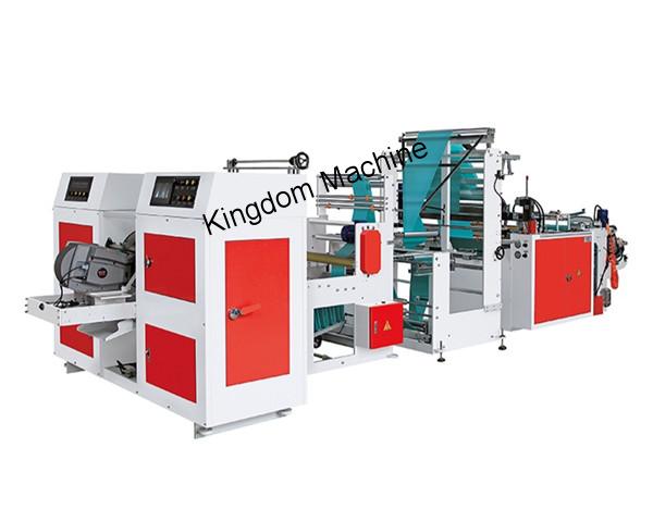 Machine automatique de sac de bretelles roulement en plastique à deux lignes avec le dispositif se
